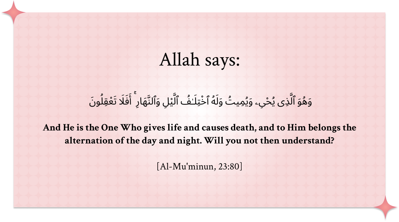 Thus , every morning when sun's gentle rays awaken your senses afresh, you are among the fortunate ones whose souls are returned by Al-Muhyi after the slumber of death.