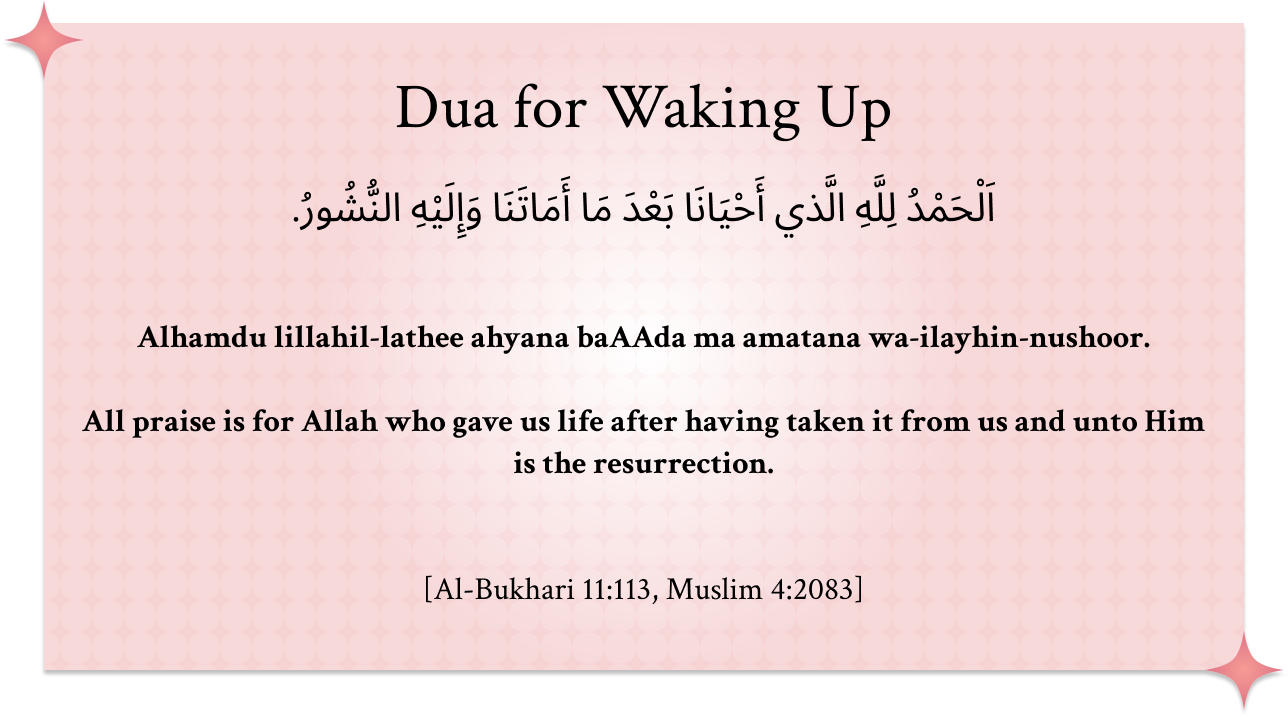 At the end of all this I want to conclude by quoting this beautiful, short Dua that we must recite after waking up: